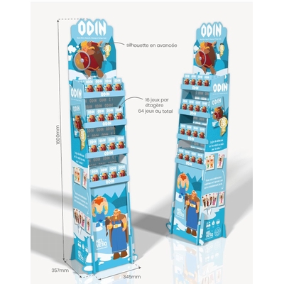 Référence : 99699 Designation : PLV DE SOL 64 ODIN Famille : PocketRayon : Jeux De SocieteSsfamille : PlvDescriptif : PLV de sol pour 64 jeux ODIN.