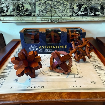 L'ensemble contient : 3 casse-têtes en bois, solutions incluses