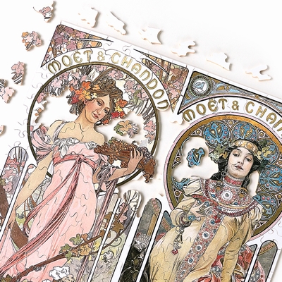 Designation : CHAMPAGNE HC Famille : 500 PiecesRayon : Puzzle Bois AdulteSsfamille : Art NouveauDescriptif : Puzzle d'art en bois de 500 pièces environ, découpé à la main en France respectant l'environnement.