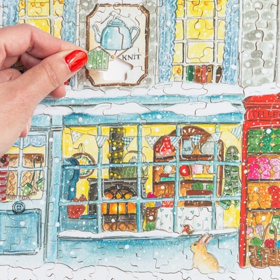 Entrez dans un univers particulièrement douillet avec cette charmante devanture anglaise sous la neige. Les Infusettes a imaginé une boutique colorée et riche en détails. À l'extérieur, chaque élément attire le regard : une cabine téléphonique remplie de pelotes de laine, des moufles suspendues aux branches, et un petit lapin curieux qui observe la scène. À l'intérieur, on peut presque entendre le poêle crépiter doucement, diffusant chaleur et réconfort... le thé est bientôt prêt !