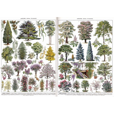 Adolphe Millot est un illustrateur naturaliste du début du XXe siècle. Il réalise de nombreuses planches de végétaux et d'animaux dans lesquelles il allie ses talents artistiques et scientifiques. La découpe de ce puzzle met en valeur la précision des dessins et les particularités de chaque espèce d'arbre ornemental.