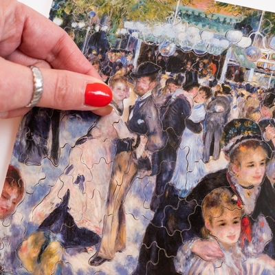 Auguste Renoir peint ce tableau intitulé Bal du Moulin de la Galette en 1876, du nom d'une guinguette populaire de la Butte Montmartre à Paris. Ce grand tableau de plus de 1,70 mètre de long est un chef d'oeuvre de la peinture impressionniste que l'on peut admirer au musée d'Orsay. Les jeux de lumière sur les vêtements et les visages des personnages ajoutent de la difficulté à ce puzzle, un véritable challenge !