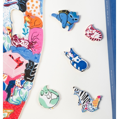 Inspiré de nos puzzles emblématiques "Les Animaux en Folie", où chaque animal forme une pièce unique, ce puzzle comprend environ 200 pièces représentant autant de chats ! Qu'ils soient musiciens, joueurs ou gourmands, Camille de Cussac a su donner à chacun une personnalité bien à lui. L'artiste française, qui vit et travaille à Paris, déploie une palette de couleurs éclatantes pour créer des scènes loufoques peuplées de personnages pleins de vie. Ce puzzle adopte la forme d'une silhouette de chat : pensez à l'assembler sur une surface stable et antidérapante pour plus de confort !