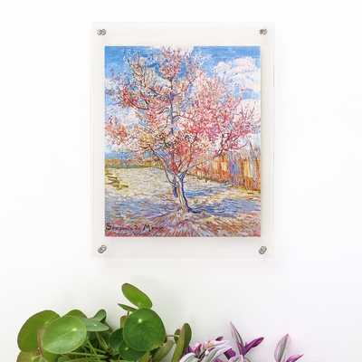 Vincent Van Gogh peint une série de peintures de vergers en fleurs au printemps 1888 lors de son séjour à Arles, dont ce Souvenir de Mauve de 1888, en hommage à Anton Mauve, son cousin et professeur. Ces deux pêchers en pleine floraison sous le soleil de printemps font partie de la collection du Musée Kroller-Muller, aux Pays Bas.